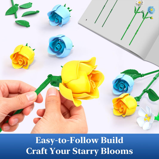 Coodoo Starry Blooms Flower Bouquet Building Set Dahlia & Rose Arrangement for Room & Home Decor, Creative Valentine's Day Gift