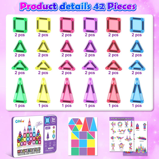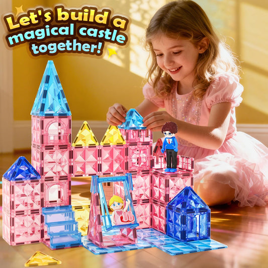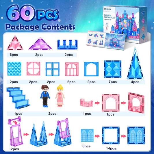Coodoo Diamond Magnetic Tiles & Building Blocks 60 PCS — Princess Toys for Girls & Boys Birthday & Xmas Present