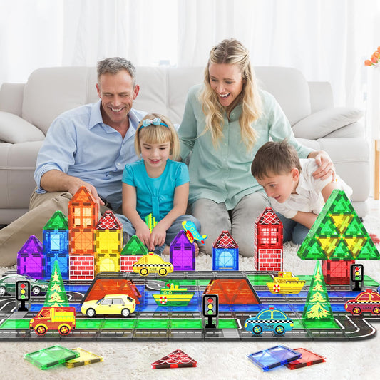 Coodoo Magnetic Tiles with 2 Cars Toys for 3 4 5 6 7 8+ Year Old Boys Girls, Magnetic Blocks Building Set for Toddlers