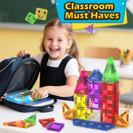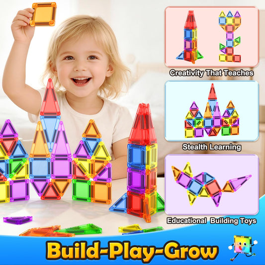 Coodoo Magnetic Tiles 60 PCS Kids Toys STEM Sensory Toys Preschool Kindergarten Toddler Toy