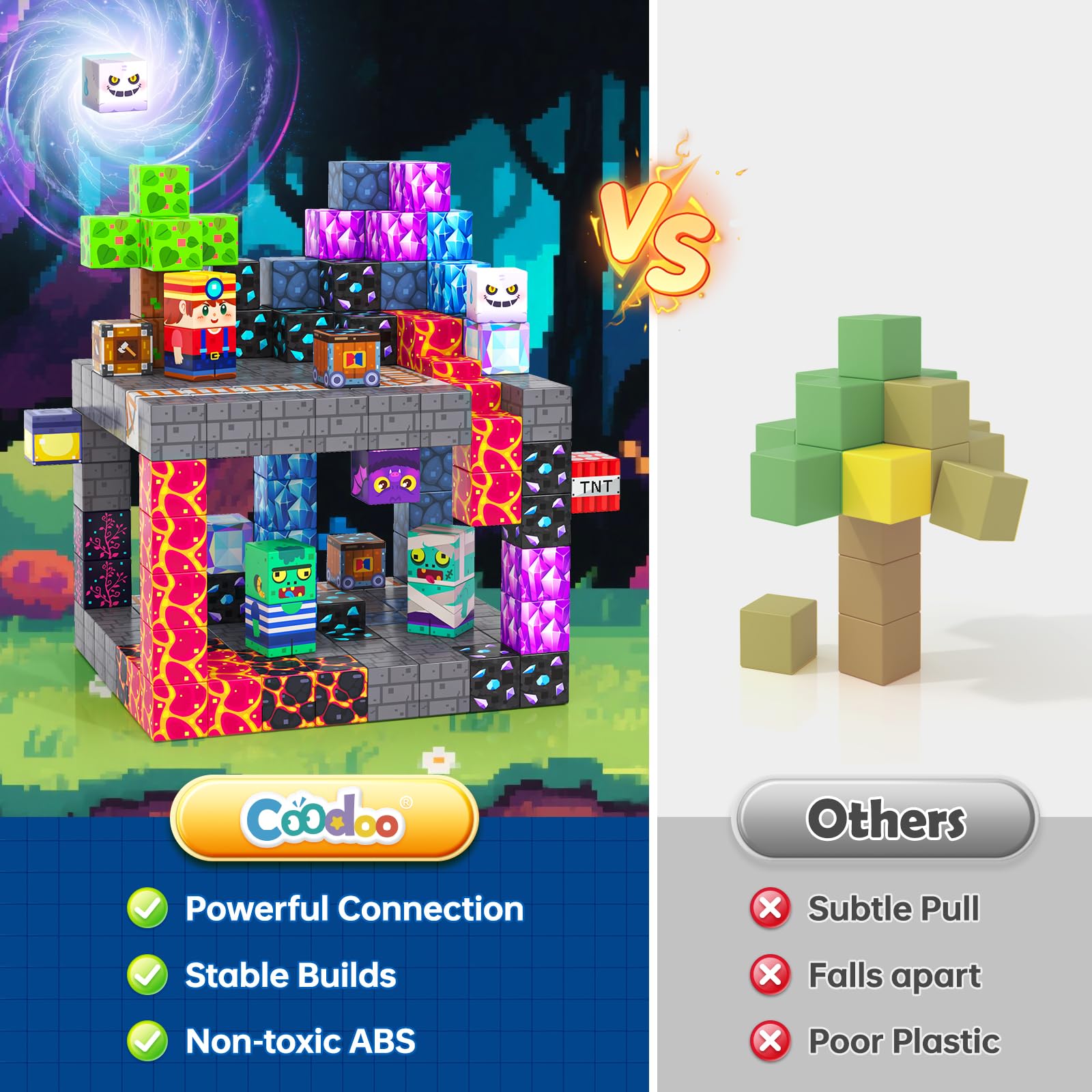 Coodoo 100 PCS Magnetic Blocks Mystic Mine Adventure Themed Learning and Educational Toys Christmas and Birthday gifts for Kids