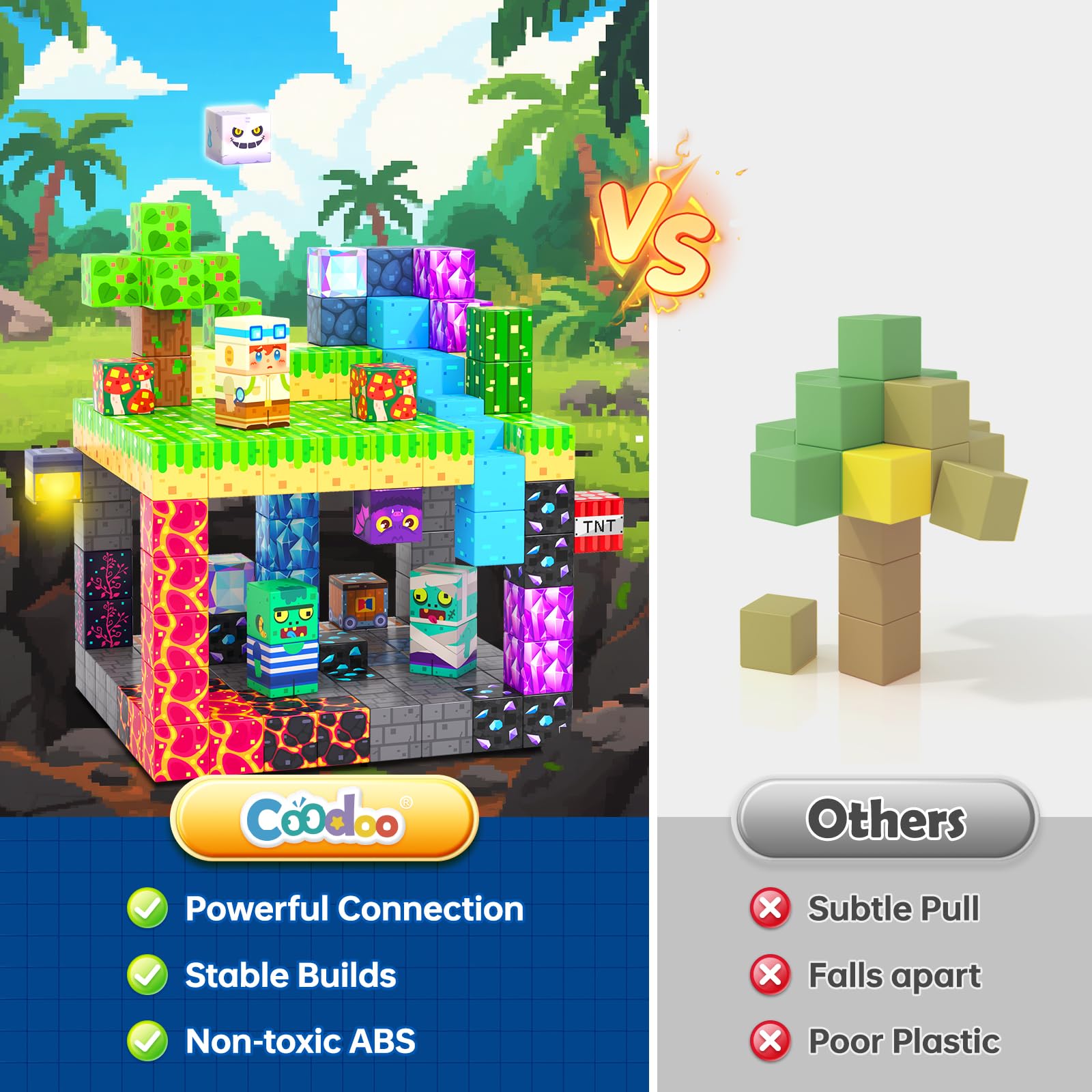Coodoo 150PCS Magnetic Blocks Rainforest Mine Adventure Building Toys Stem Learning Blocks Gifts for Kids