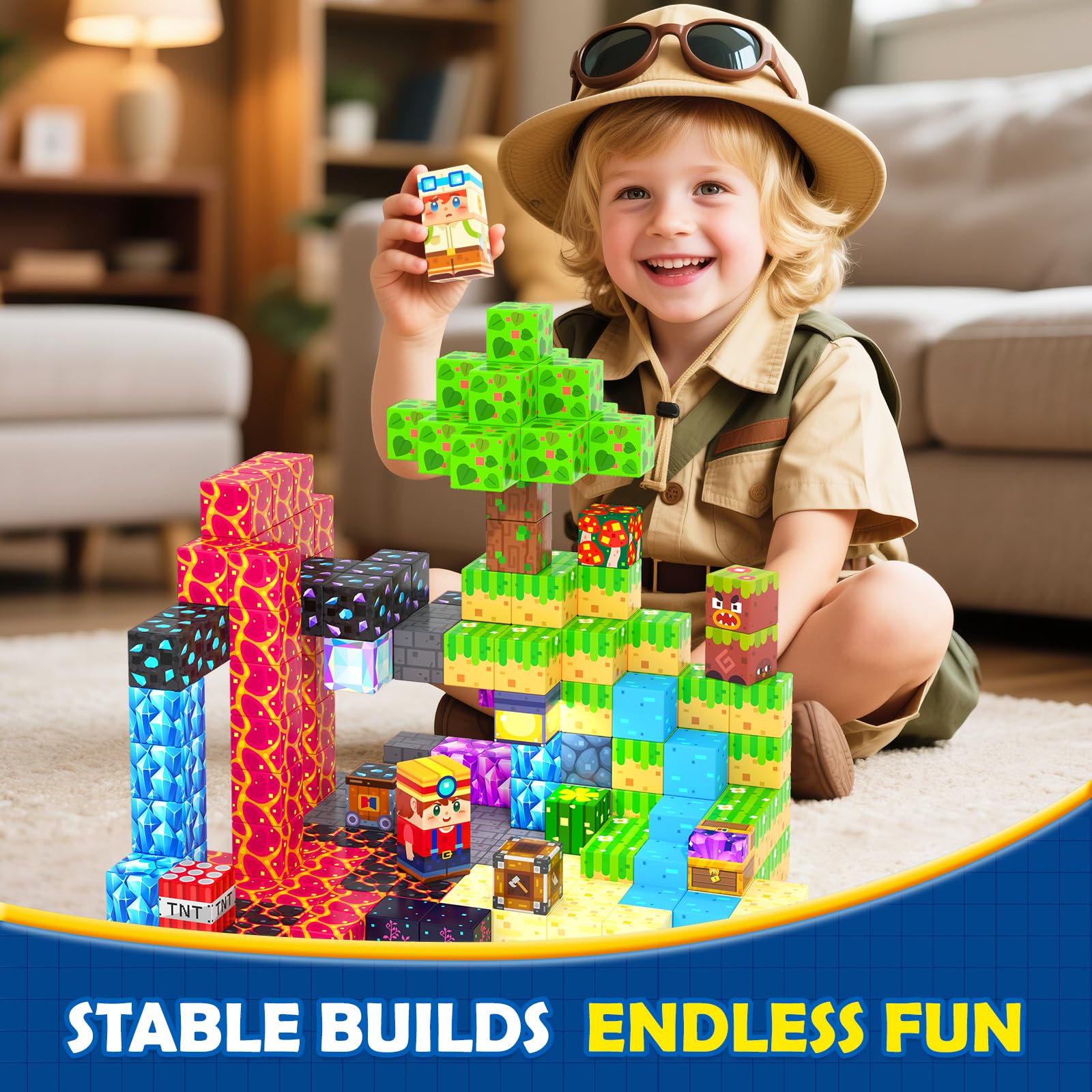 Safe and Durable Design: Crafted with powerful force magnet and premium ABS plastic, these magnetic blocks stay securely locked even in the most daring constructions. Kids can build towering rainforests or erupting volcanoes without worrying about collapses—perfect for ages 5-10. The rugged design ensures endless playtime exploration!